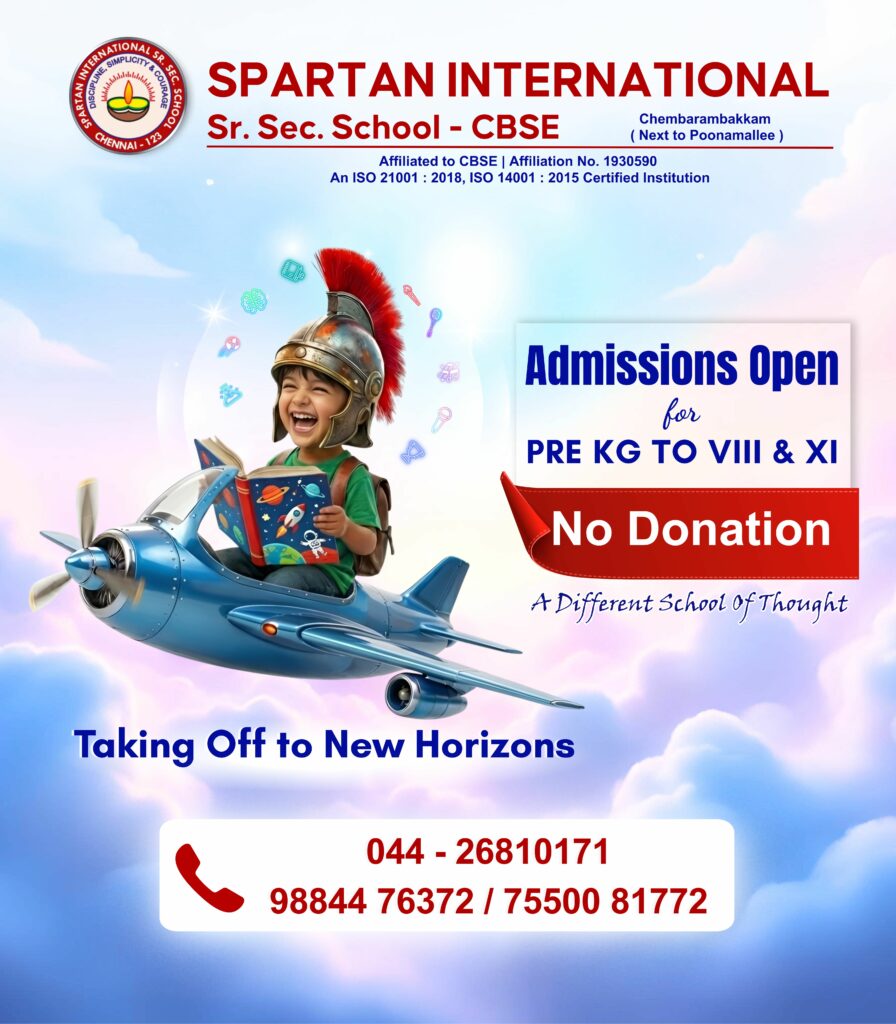 Spartan International Senior Secondary School, is a distinguished educational institution affiliated with CBSE (Central Board of Secondary Education). We take pride in offering exceptional and progressive learning experiences for students ranging from Pre-KG to Grade 12. Spartan is rated as one of the finest schools in Tiruvallur district, Tamilnadu. Also, it is renowned for its faithful adherence to international standards of education.